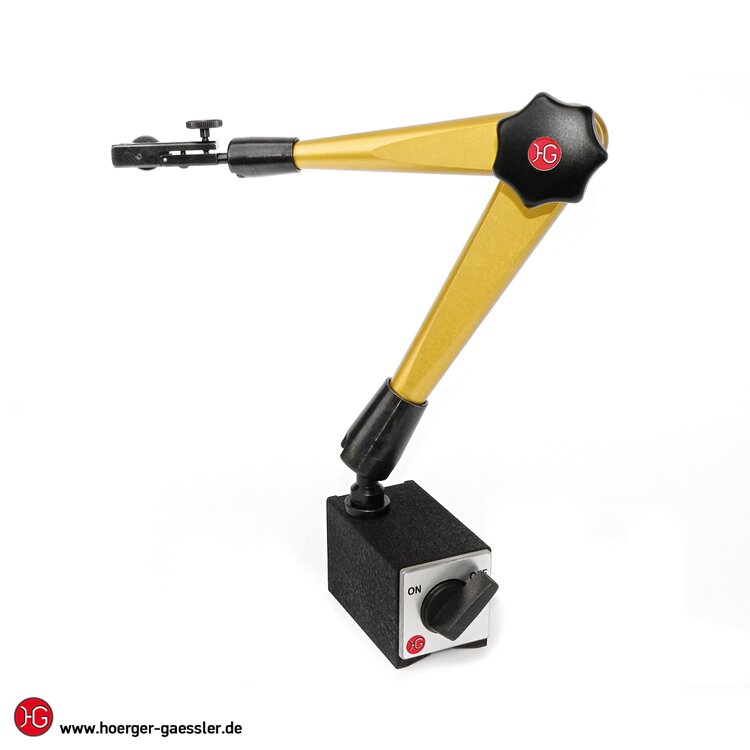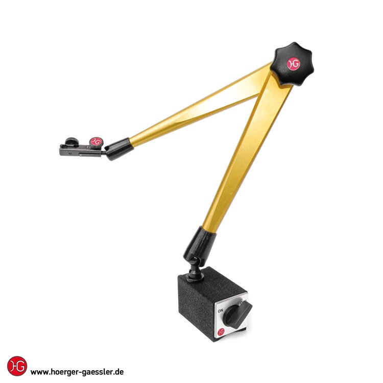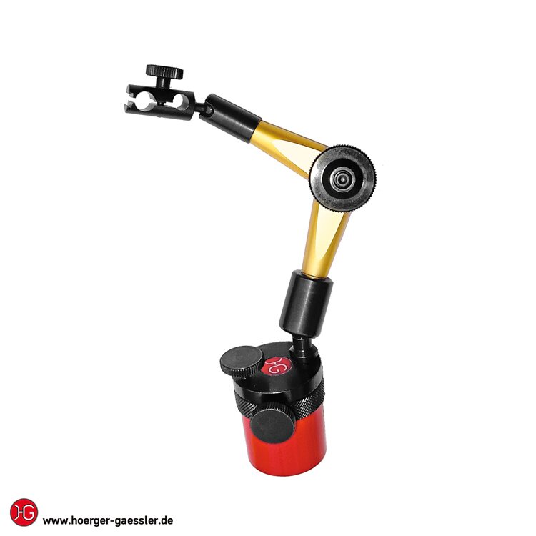 Die Klemmung der Gelenke erfolgt über ein Anziehen des Sterngriffs. Dadurch wird im Inneren des Stativs ein raffiniertes Hydrauliksystem angestoßen, das jedes Gelenk mit höchster Starrheit klemmt. Der enorme Öldruck im Stativ garantiert beste Messergebnisse und absolut flüssige Spannvorgänge. Durch beste Oberflächengüten der Dichtflächen und hochwertigste Verarbeitung erreichen die Stative bei sachgemäßer Handhabung oft eine Lebensdauer von mehr als einer Generation.