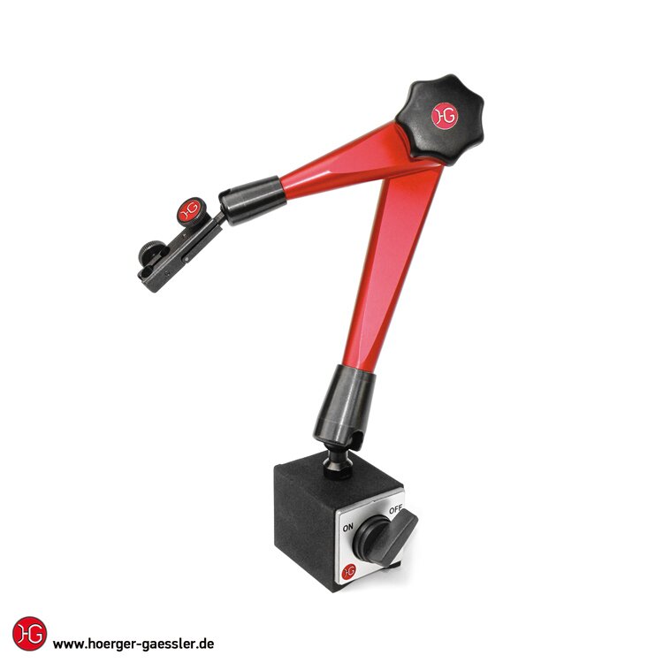 Die mechanischen Stative werden durch Festziehen des Sterngriffs geklemmt. Dabei wird im Inneren des Stativs eine ausgeklügelte Mechanik betätigt, die die einzelnen Gelenke starr verspannt. Die Klemmung erfolgt progressiv, sodass jedes Gelenk der Reihe nach von unten nach oben angesprochen wird, um sehr schnell und komfortabel ausrichten zu können. Der robuste und präzise Aufbau der Mechanik gewährleistet Langlebigkeit und höchste Präzision.